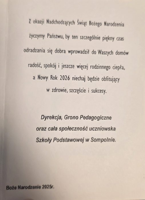 Na zakończenie życzymy wszystkim zdrowych, spokojnych i pełnych radości Świąt Bożego Narodzenia, spędzonych w gronie najbliższych, a nadchodzący Nowy Rok niech przyniesie wiele dobra, nadziei i pomyślności.